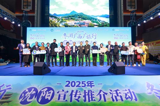 12月12日-13日,由广西壮族自治区人民政府驻北京办事处、广西旅游协会指导,广西旅游发展集团联合广西容县、西林县、富川瑶族自治县共同主办的2025年“冬游广西广旅行”沈阳宣传推介活动在辽宁沈阳成功举办。