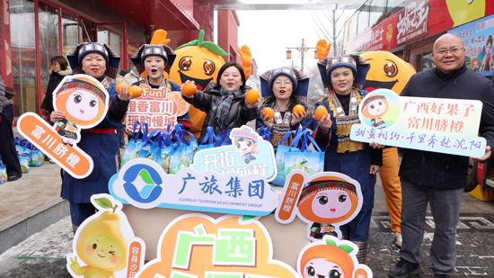 2025“冬游广西广旅行”广西好果子在沈阳文旅之王双层观光巴士盛京大家庭(中心庙胡同)站派送活动现场。广旅集团供图