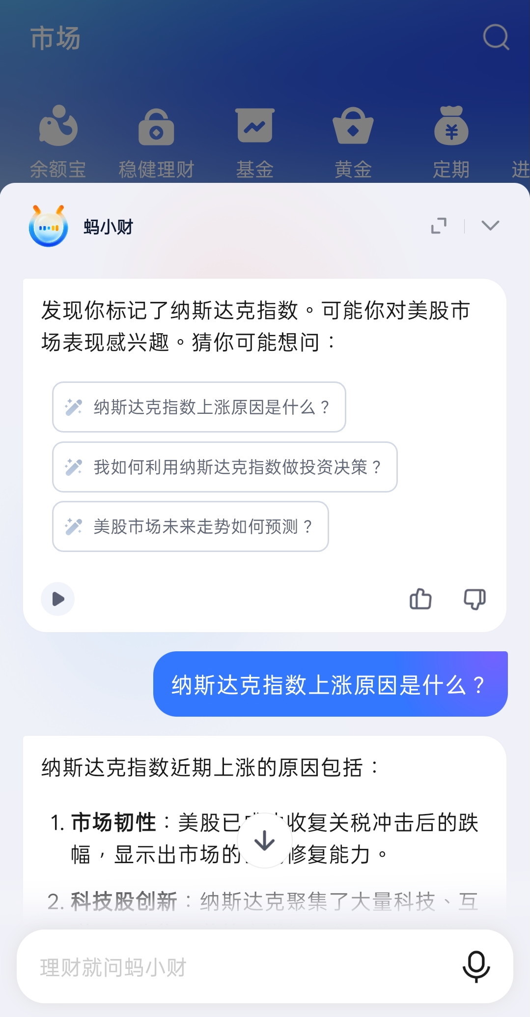 就像当年余额宝诞生时,把「1 块钱也能理财」的理念带入大众视野,开启了中国普惠理财的新阶段。今天,普通人线上动动手就能接触到丰富的理财产品,但在理财选择和决策上,也对大家的理财认知提出更高要求。高净值人群往往有专门的客户经理,对于更多的普通人,AI 就是实现「数字普惠服务」的极佳工具。